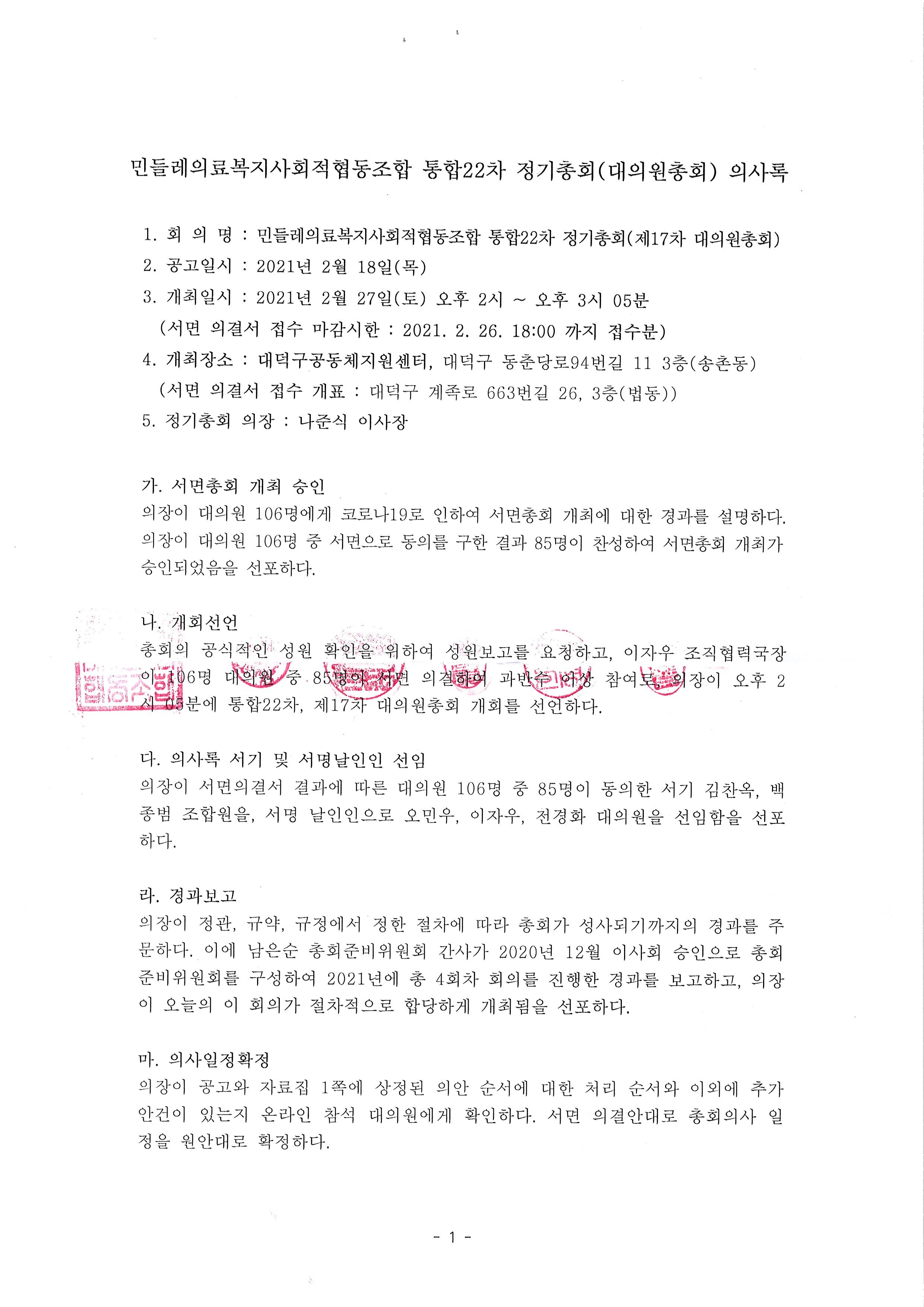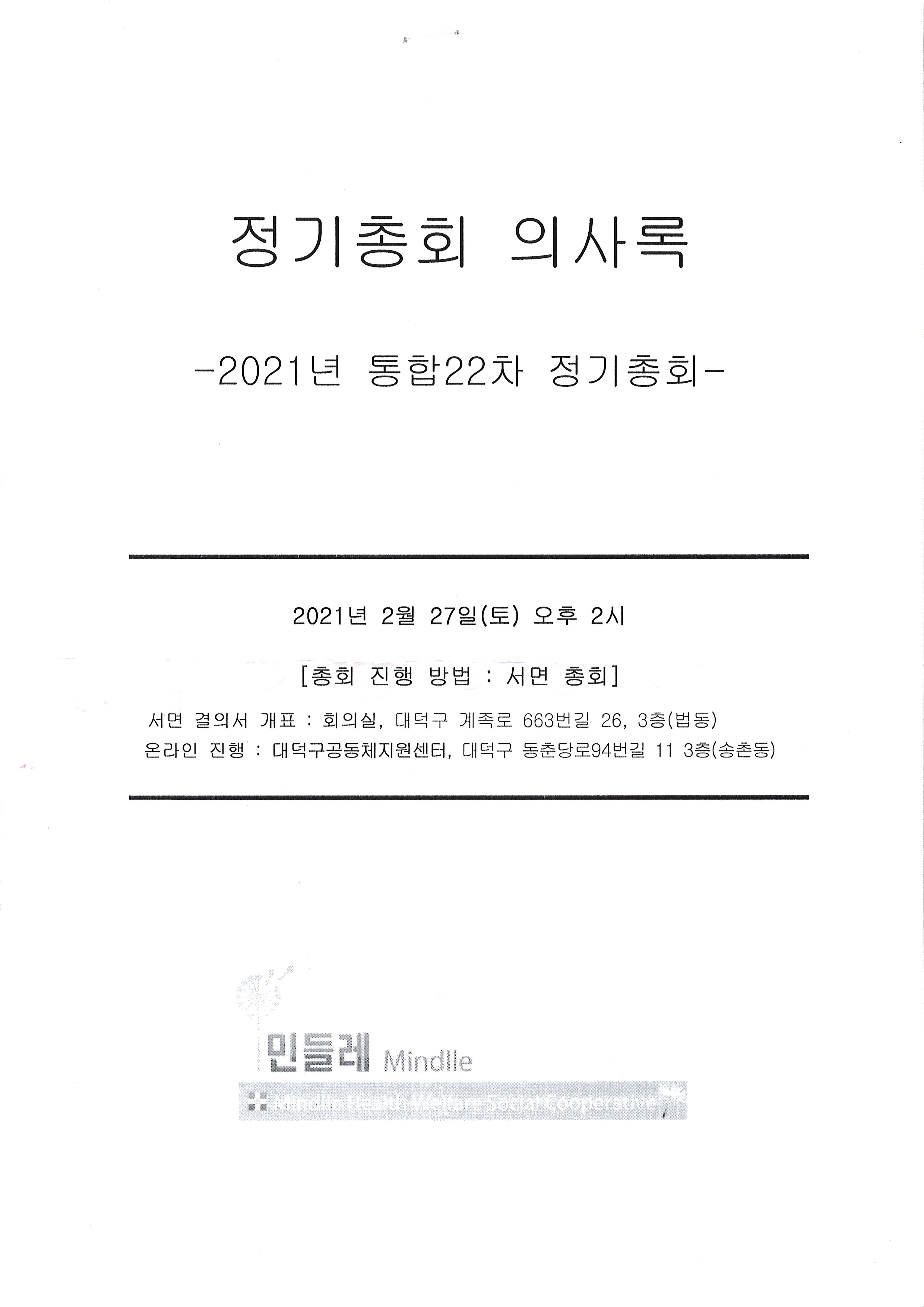 통합22차 정기총회의사록(2021.02.27)