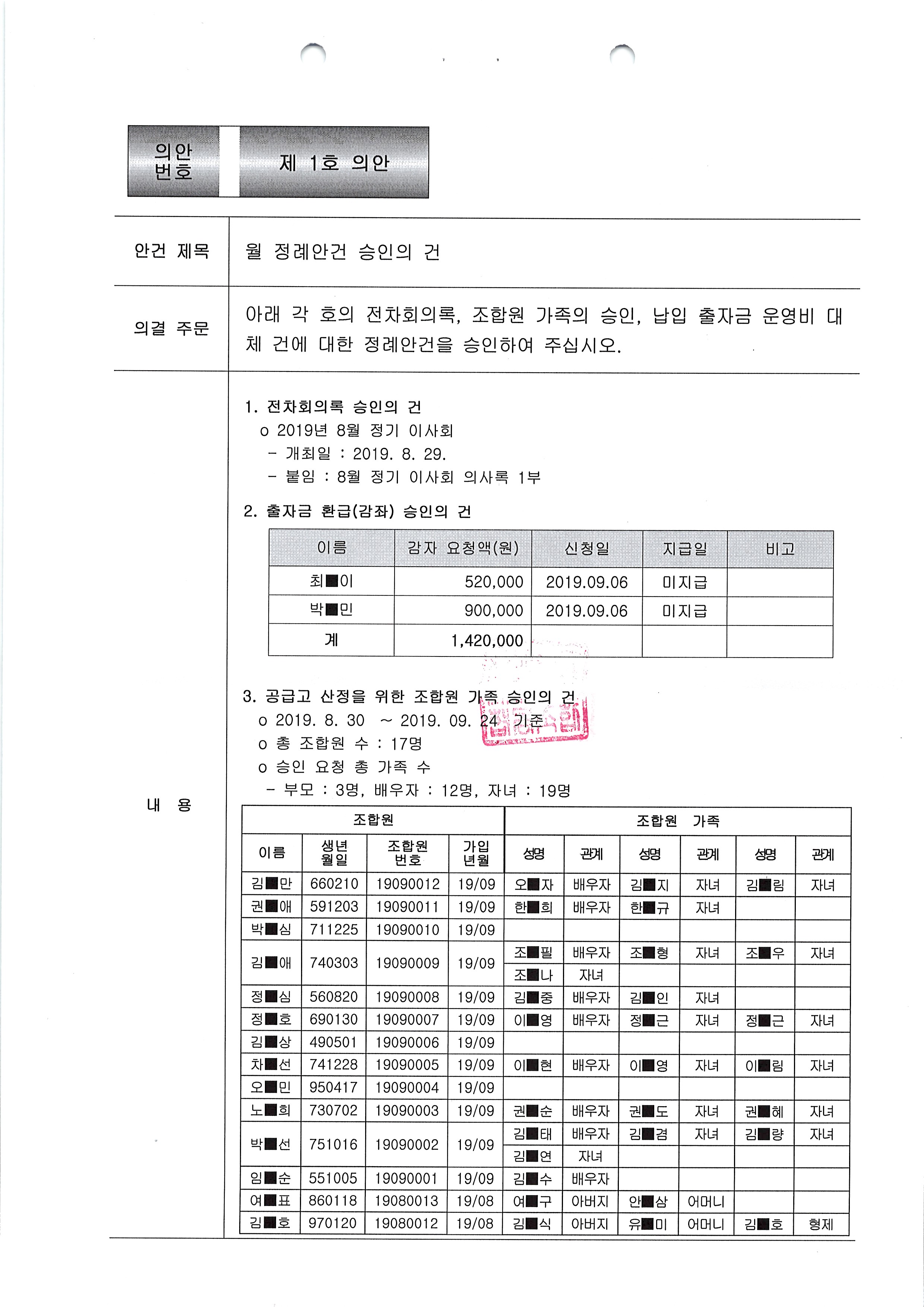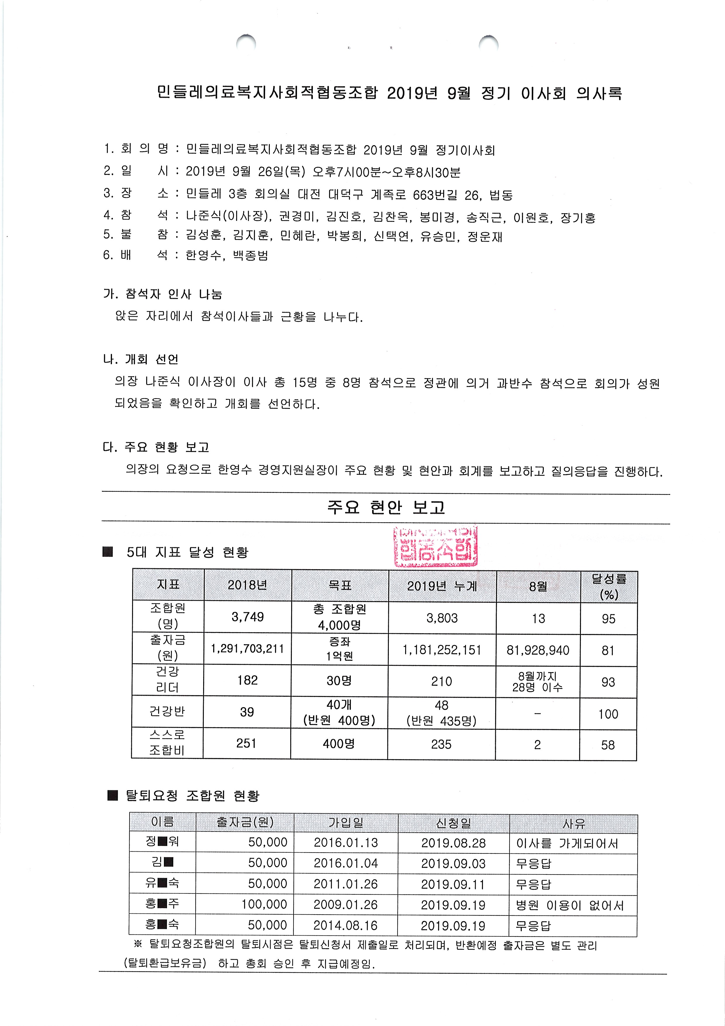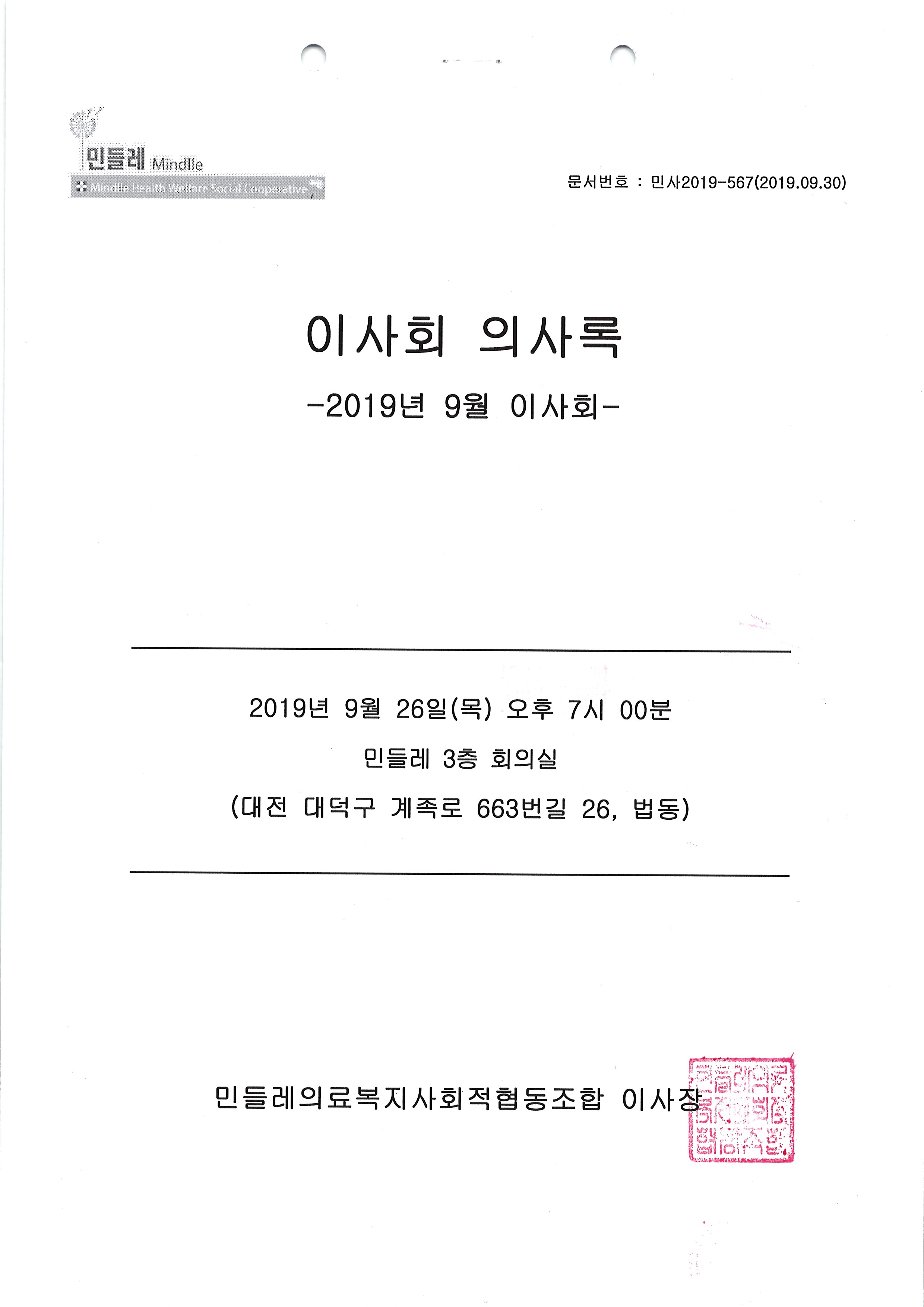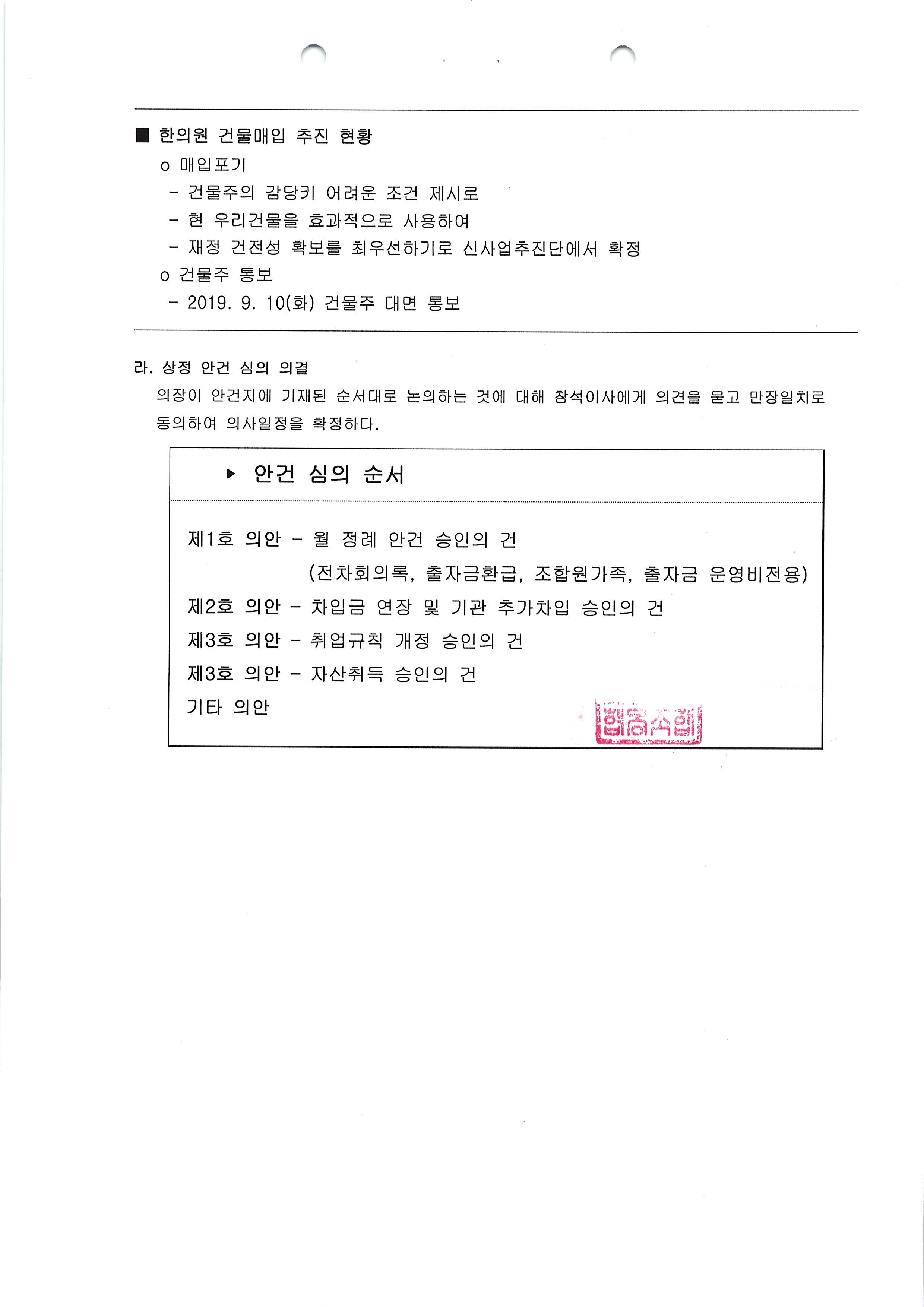[2019-09] 정기이사회 결과보고
