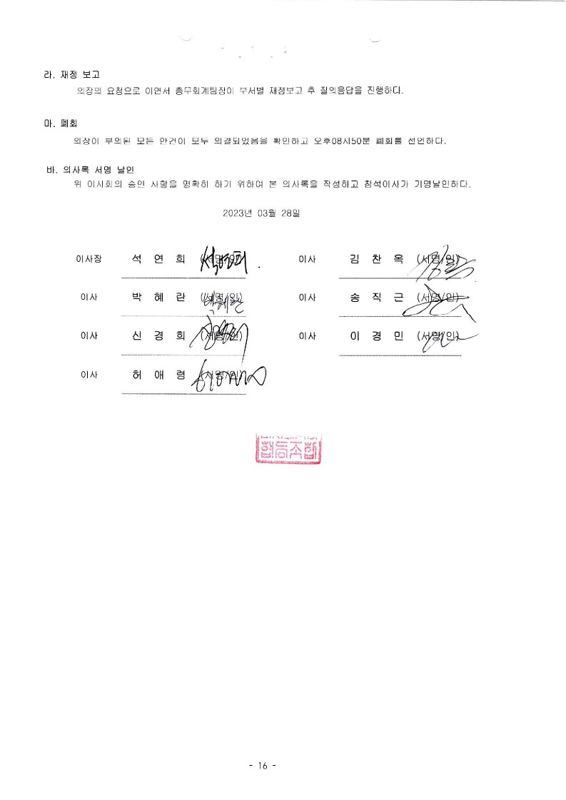 [2023-03] 정기이사회 결과보고