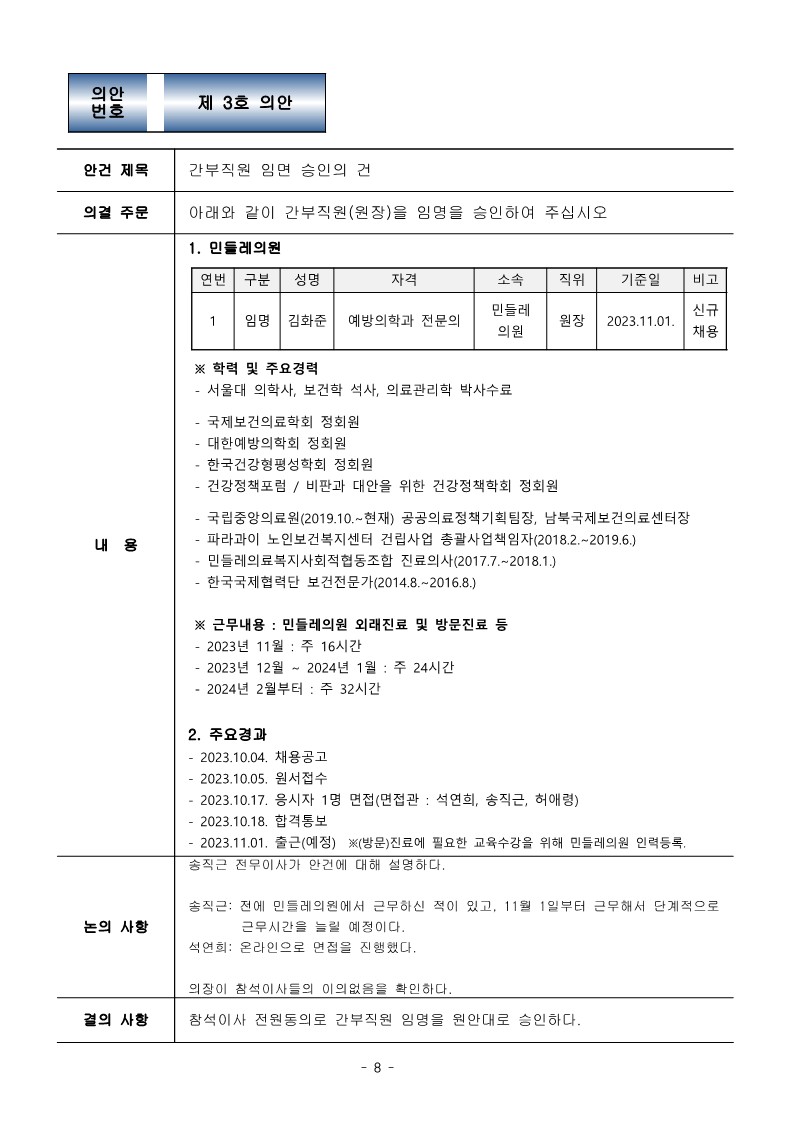 [2023-08] 정기이사회 결과보고