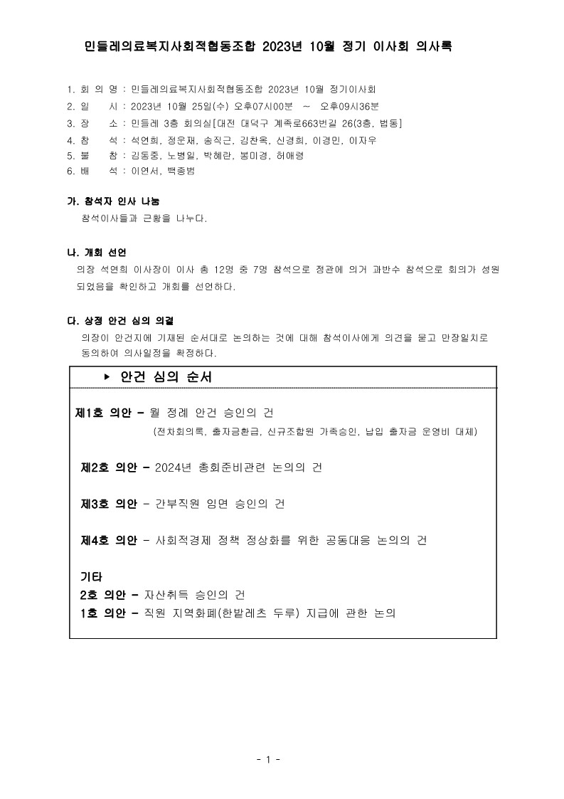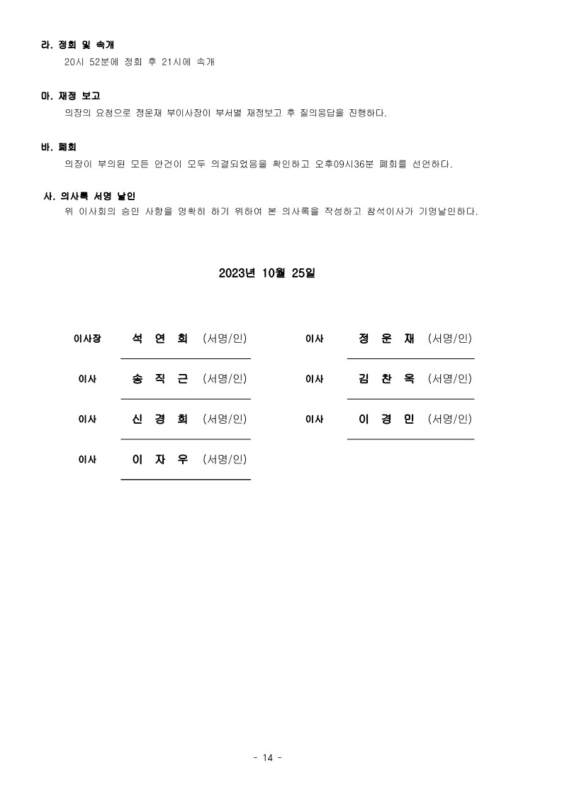 [2023-10] 정기이사회 결과보고