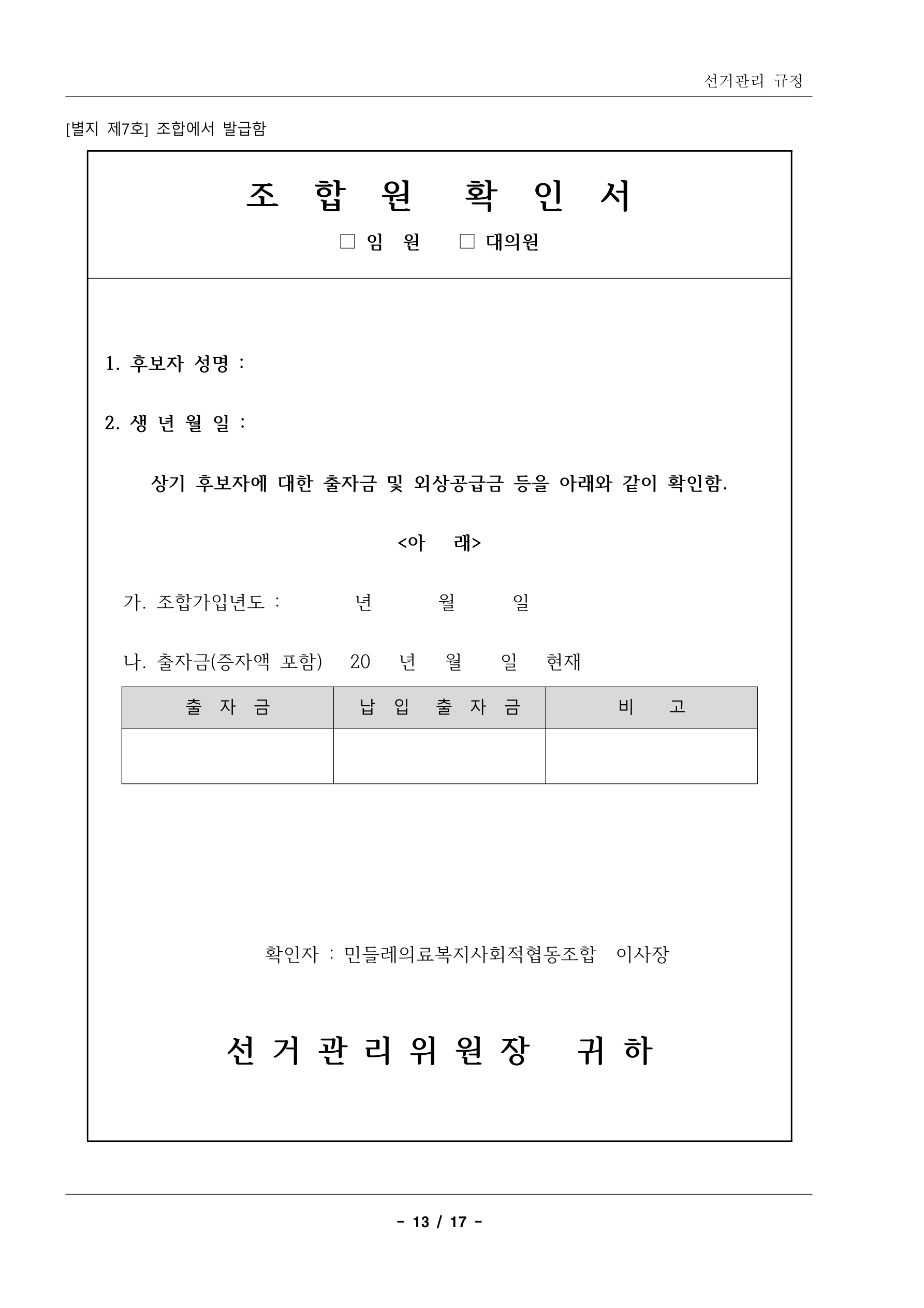 출자금 증자 신청