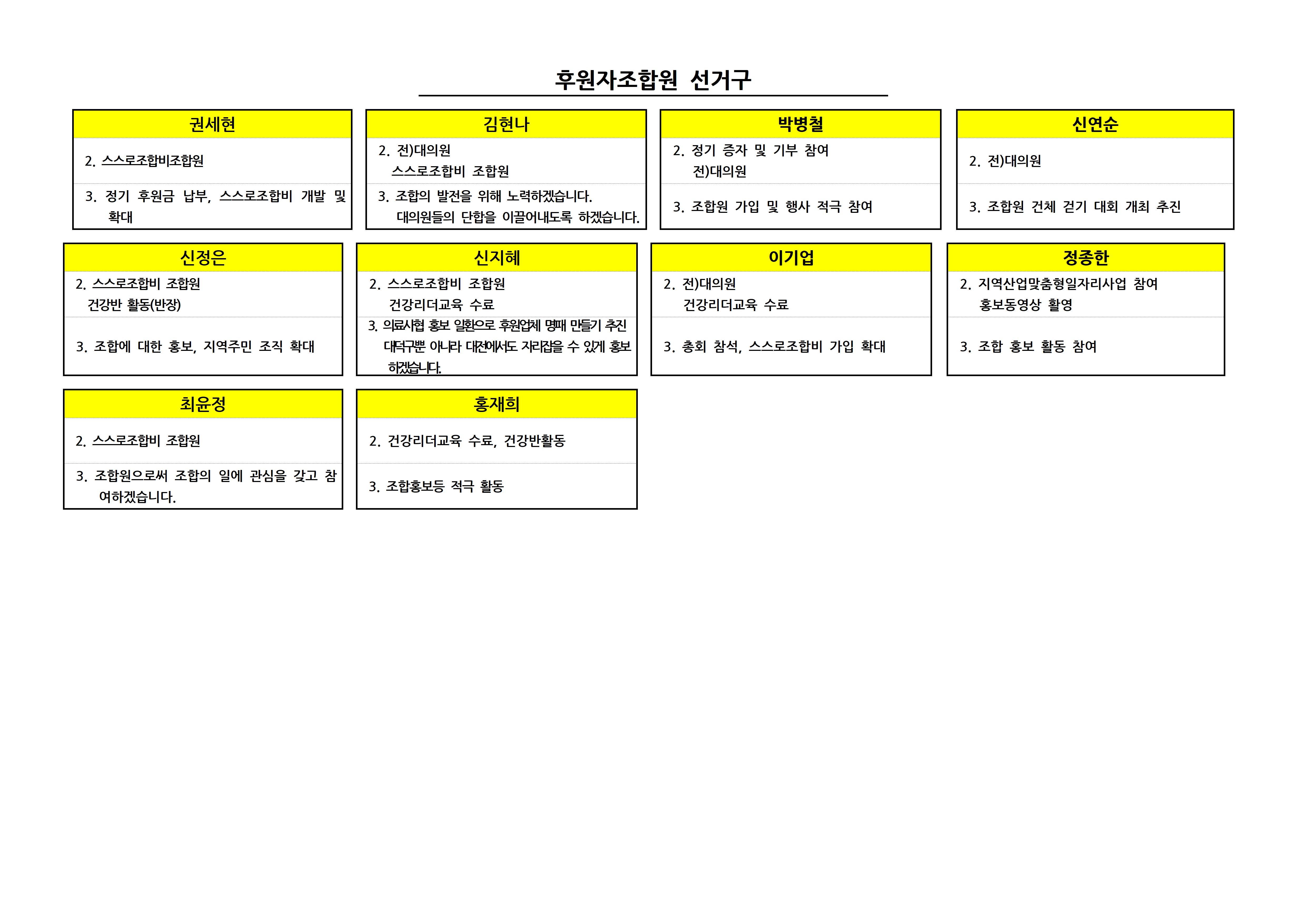 제9기 대의원 입후보자 선거구별 공보